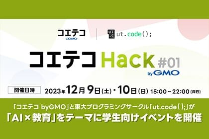 GMOメディアが運営するプログラミング教育ポータルサイト「コエテコ byGMO」は、2023年12月に東京大学のプログラミングサークル「ut.codeユーティーコード();」と共同で「AI×教育」をテーマにしたハッカソンイベント『コエテコ Hack byGMO #1』を開催しました。