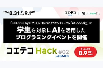 GMOメディアが運営するプログラミング教育ポータルサイト「コエテコ byGMO」は、2024年8月、9月に東京大学のプログラミングサークル「ut.codeユーティーコード();」と共同で「AIで日常を便利に」をテーマにしたハッカソンイベント『コエテコ Hack byGMO #2』を開催しました。